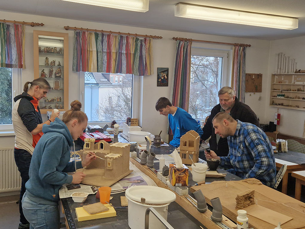 Voller Begeisterung und mit handwerklichem Geschick startete unser Krippenbaukurs für Gehörlose in die erste Runde. Begleitet wird der Kurs von Gebärdendolmetschern, die für eine barrierefreie Kommunikation sorgten.