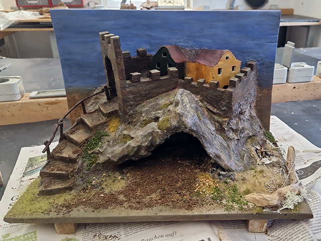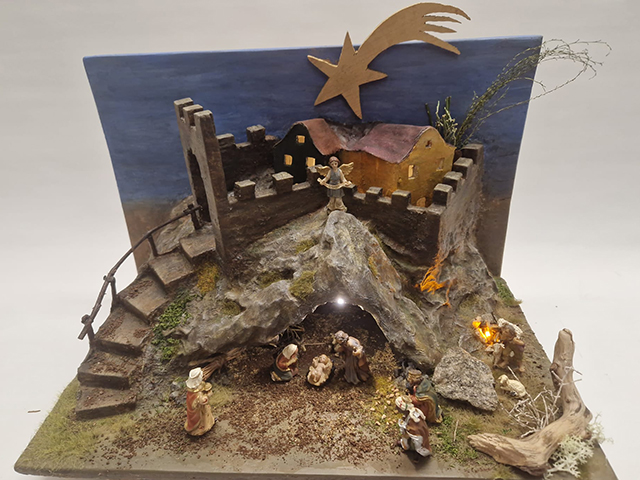 Familienkrippe von Pfarrer Konsistorialrat Friedrich Hintermüller, Pappmaché, bemalt Diese Krippe wurde 1958 von Friedrich Hintermüller im Rahmen seiner Ausbildung am Petrinum im Rahmen des Werkunterrichtes unter Anleitung von Prof. Perndl geschaffen. Das aus Pappmaché gefertigte Ensemble umfasst Grotte, Berg und Häuser. Die Krippe war ein Geschenk an seinen Bruder Sebastian Hintermüller und befindet sich seither im Familienbesitz. Im Jahr 2025 erfolgte eine vollständige Restaurierung durch Mag. Michael Thomasberger (Obmann der Linzer Krippenfreunde) und Lydia Schmidinger (Linzer Krippenfreunde).