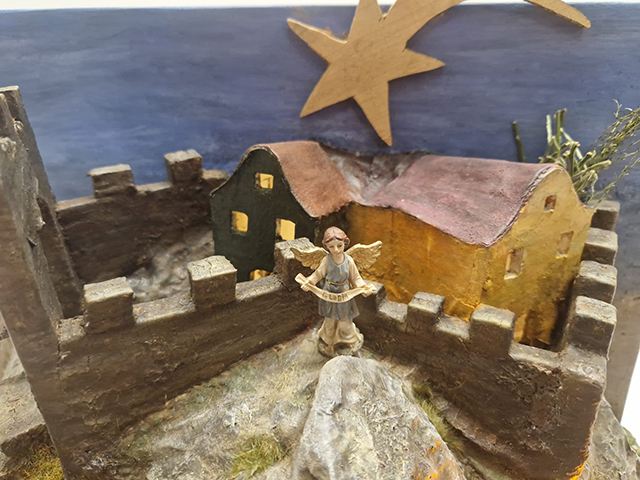 Familienkrippe von Pfarrer Konsistorialrat Friedrich Hintermüller, Pappmaché, bemalt Diese Krippe wurde 1958 von Friedrich Hintermüller im Rahmen seiner Ausbildung am Petrinum im Rahmen des Werkunterrichtes unter Anleitung von Prof. Perndl geschaffen. Das aus Pappmaché gefertigte Ensemble umfasst Grotte, Berg und Häuser. Die Krippe war ein Geschenk an seinen Bruder Sebastian Hintermüller und befindet sich seither im Familienbesitz. Im Jahr 2025 erfolgte eine vollständige Restaurierung durch Mag. Michael Thomasberger (Obmann der Linzer Krippenfreunde) und Lydia Schmidinger (Linzer Krippenfreunde).